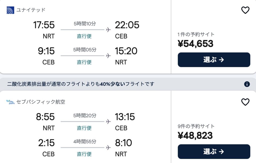 成田〜セブ直行便ですが、往復6万円以下で購入可能です。
