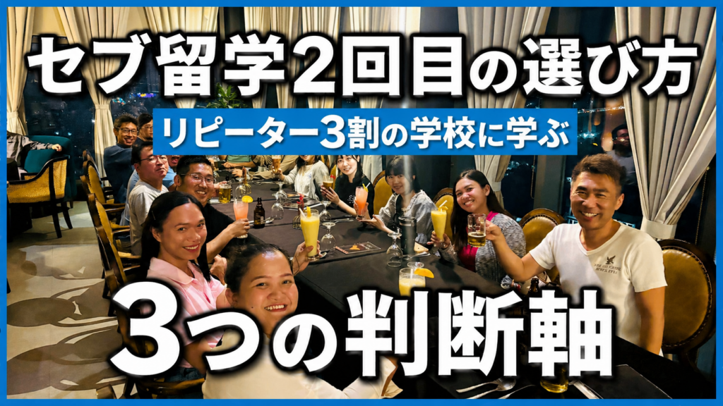 セブ島留学2回目の学校選び|リピーターが見ている3つの軸|約3割がリピーターのセブ英語倶楽部