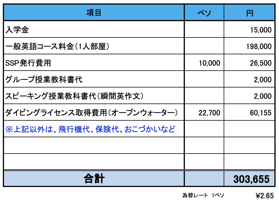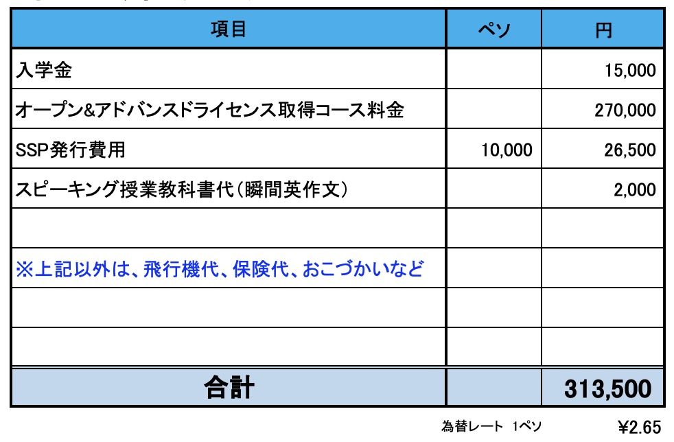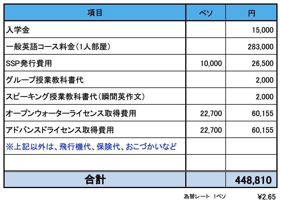 - SSP(フィリピン学習許可証):約26,500円