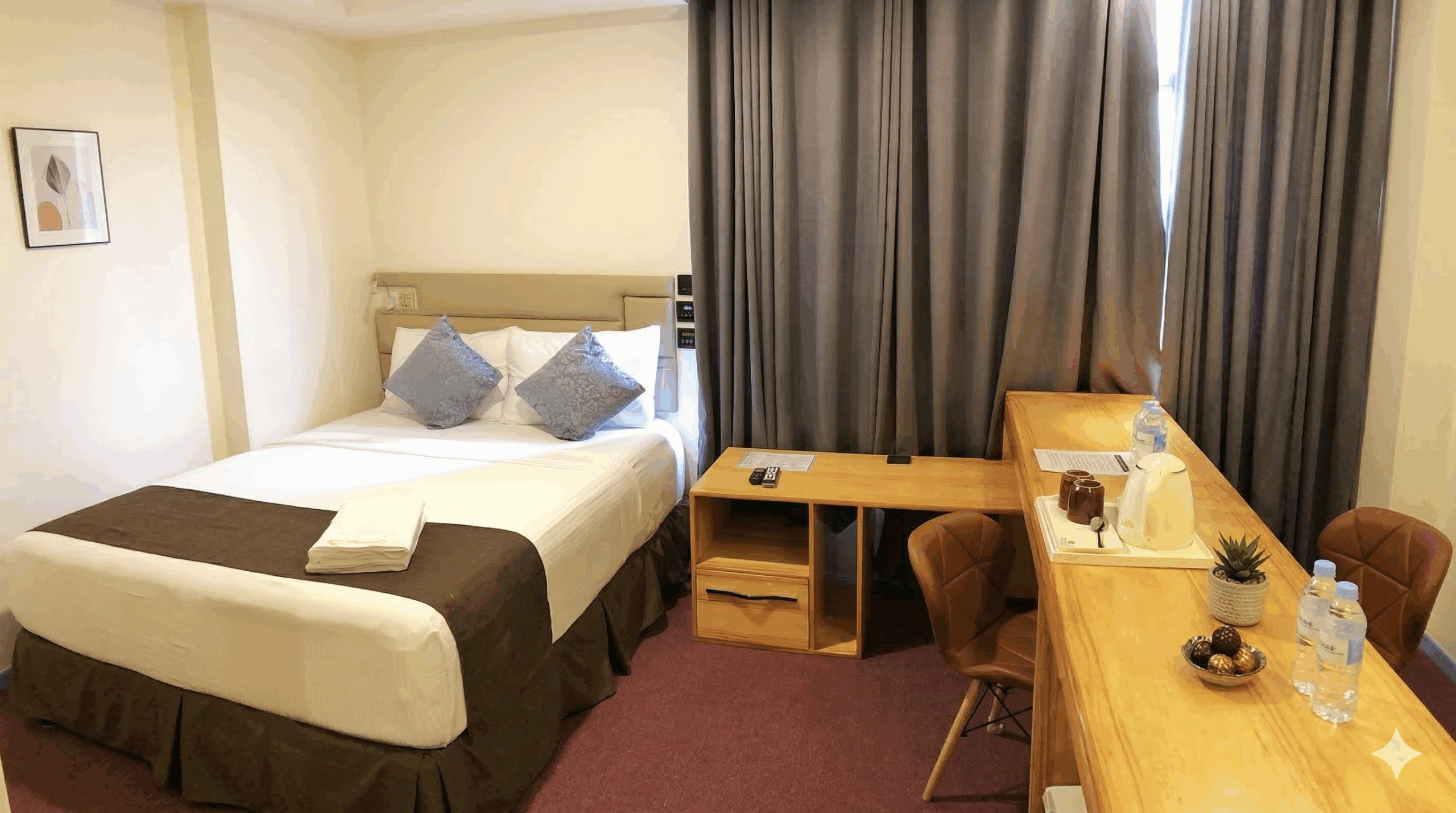 『エースペンション/Ace Penzionne』という、ホテル予約サイトでも評価の高いホテルを、教室&宿泊施設として使用しております。日本人観光客も多く宿泊しており、日本人リピーターも多いホテルです。また、出入口には24時間受付係が常駐しており、全フロアに監視カメラも設置されていますのでセキュリティ面でも安心です。このホテル内には、1階に日本食レストラン『Oishi Cebu / おいしいセブ』、2階には評判の良い格安マッサージ店『ヌアタイ』があり、安心してお過ごし頂ける環境です。