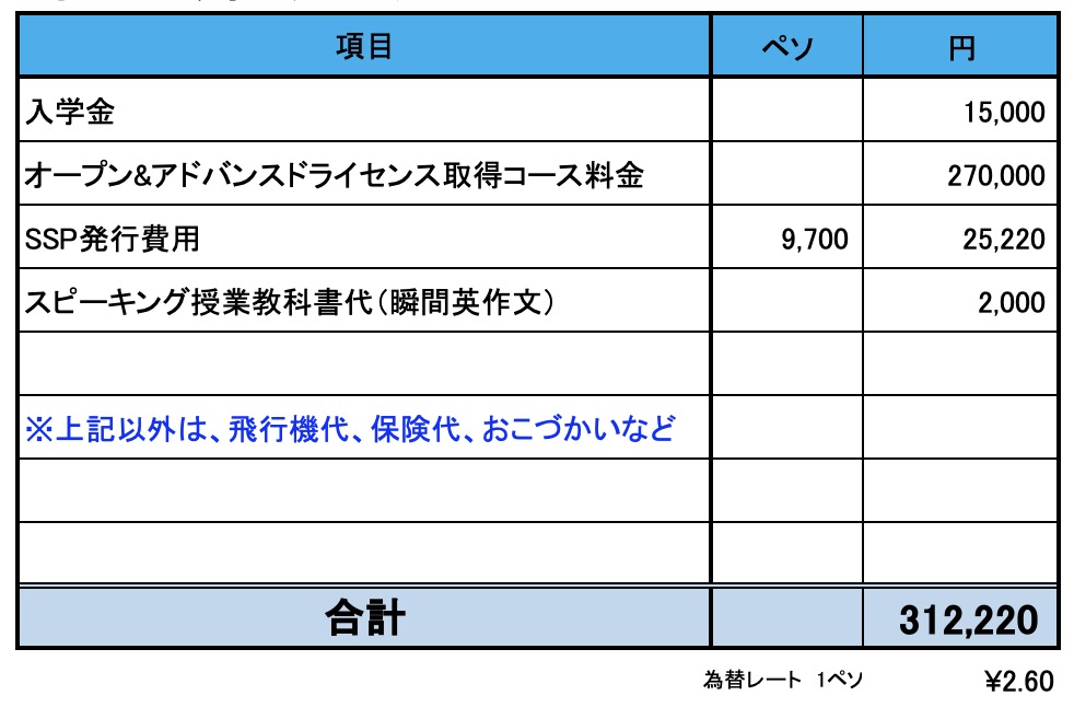 (3)SSP(フィリピンでの学習許可) 9,700ペソ(約25,000円)
