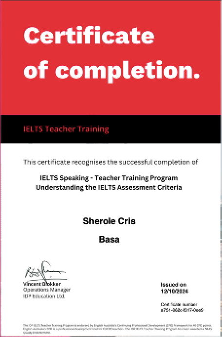 - フィリピン人:IELTS公式団体の🇦🇺IDP講師研修修了(オンライン)/ 指導実績50名以上