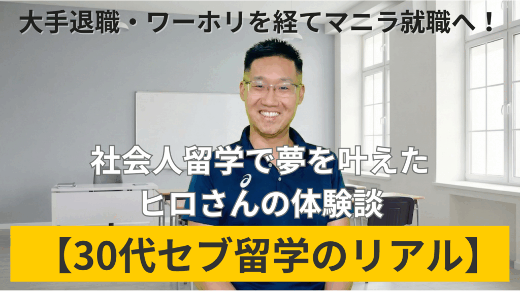 【30代留学のリアル】大手退職・ワーホリを経てマニラ就職へ!社会人留学で夢を叶えたヒロさんの体験談